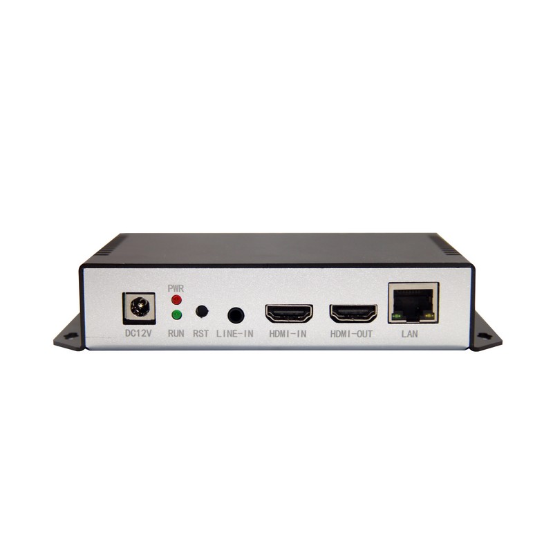 該系列產品采用華為先進的H.264/H.265網絡高清數字音視頻芯片壓縮技術 (1080P@60FPS)。 產品概述 HDMI高清編碼器60幀是的高清音視頻編碼產品,只需要占用較小的帶寬,即可獲得高清晰度的視頻信號。該產品采用H.265/H.264雙編碼格式,可同時對視頻音頻進行編碼。輸出TS雙碼流設計,可根據不同需要設置每一路的輸出碼流分辨率,該設備具有高集成,低成本的優勢,可廣泛應用于各種數字電視播出系統中,支持VLC解碼。主要特征 ※ 采用標準H265/H264雙編碼方式 ※ 編碼幀率支持1080P 60幀 ※ 支持1路HDMI、1路HDMI輸出、1路模擬音頻輸入 ※ 支持ONVIF協議,可支持NVR錄播 ※ 音頻編碼支持AAC/G711 ※ 音頻支持左右聲道,支持音量大小調節 ※ 碼流控制:CBR/VBR碼率控制,16kbit/s~12Mbit/s ※ 網絡接口采用1000M 全雙工模式 ※ 支持RTSP、RTMP、RTP、UDP組播、UDP單播等協議 ※ WEB操作界面,中英文配置界面可選,可修改密碼 ※ 支持網絡遠程管理、升級。 ※ 支持主流、副流多協議多碼流輸出 ※ 支持輸出分辨率單獨設置,可放大及縮小 ※ 支持局域網LAN、廣域網WAN傳輸 ※ 支持三組中文、英文、圖片OSD,字體大小可調,可設置到屏幕任意位置。 ※ 支持DHCP自動獲取IP ※ 支持一鍵恢復默認設置 ※ 支持多品牌機頂盒解碼應用拓撲圖詳細信息產品型號HDMI高清編碼器60幀視頻輸入視頻輸入接口1路HDMI視頻接口輸入分辨率1080P\720P\1600x1200\1400x1050\1440x900\1024x768\800x600等常規分辨率音頻輸入音頻輸入接口1路3.5mm模擬音頻視頻編碼參數視頻編碼H.265 Main Profile編碼H.264 Baseline Profile編碼H.264 Main Profile編碼H.264 High Profile編碼編碼后的尺寸1920*1080\1280*720\720*576\640*480\352*288\等視頻碼率CBR/VBR碼率控制 16Kbps-12Mbps視頻幀率60幀音頻編碼AAC/G711可選音頻碼率64Kb/s~384Kb/s采樣率32000、44100、48000等字幕添加文字,圖片網絡參數網絡接口1個RJ45,100M/1000M自適應以太網口網絡協議支持RTSP、RTMP、UDP、組播、單播碼流類型TS標準流、雙碼流接口協議ONVIF配置管理WEB配置,遠程升級常規參數電源DC12V 1A功耗不大于5W工作溫度-20℃~60℃工作濕度<90%,無冷凝尺寸(長*寬*高)12.8cm*8.7cm*2.5cm重量0.3Kg 查看更多