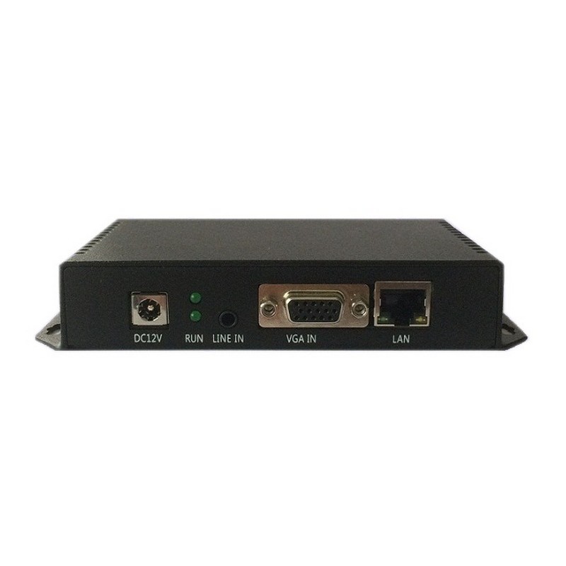 該系列產品采用華為先進的H.264/H.265網絡高清數字音視頻芯片壓縮技術,核心芯片采用Hi3516A (1080P@60FPS) ,內存為512MB。 產品概述采用新高 效H.265高清數字視頻壓縮技術,具備穩定可靠、高清晰度、低碼率、低延時等特點。輸入高清的VGA視頻頻信號,進行編碼處理,經過數字芯片壓縮處理,輸出標準的TS網絡流,該產品的推出填補了業內空白,直接取代了傳統的采集卡的方式,硬編碼方式,系統更加穩定,廣泛用于各種需要對高清視頻信號及高分辨率高幀率進行采集并基于IP網絡傳送的場合,強大的擴展性更可輕易應對不同的行業及需求,可作為視頻直播編碼器 采用工業控制精密設計,體積小,方便安裝,功率小于5W,更節能,更穩定。主要特征 ※ 采用標準H265/H264雙編碼方式 ※ 編碼幀率支持1080P 60幀 ※ 支持1路VGA、1路模擬音頻輸入 ※ 支持ONVIF協議,可支持NVR錄播 ※ 音頻編碼支持AAC/G711 ※ 音頻支持左右聲道,支持音量大小調節 ※ 碼流控制:CBR/VBR碼率控制,16kbit/s~12Mbit/s ※ 網絡接口采用1000M 全雙工模式 ※ 支持RTSP、RTMP、RTP、UDP組播、UDP單播等協議(RTMP支持輸入用戶名、密碼功能) ※ WEB操作界面,中英文配置界面可選,可修改密碼 ※ 支持網絡遠程管理、升級。 ※ 支持主流、副流多協議多碼流輸出 ※ 支持局域網LAN、廣域網WAN傳輸 ※ 支持三組中文、英文、圖片OSD,字體大小可調,可設置到屏幕任意位置。 ※ 支持DHCP自動獲取IP ※ 支持一鍵恢復默認設置 ※ 支持多品牌機頂盒解碼 應用拓撲圖詳細信息產品型號VGA高清編碼器60幀視頻輸入視頻輸入接口1路VGA視頻接口輸入分辨率1080P\720P\1600x1200\1400x1050\1440x900\1280x1024\1280x960\1280x800\1024x768\800x600等常規分辨率音頻輸入音頻輸入接口1路3.5mm模擬音頻視頻編碼參數視頻編碼H.265 Main Profile編碼H.264 Baseline Profile編碼H.264 Main Profile編碼H.264 High Profile編碼編碼后的尺寸1920*1080\1280*720\720*576\640*480\\352*288\等視頻碼率CBR/VBR碼率控制 16Kbps-12Mbps視頻幀率60幀音頻編碼AAC/G711可選音頻碼率64Kb/s~384Kb/s字幕添加文字,圖片網絡參數網絡接口1個RJ45,100M/1000M自適應以太網口網絡協議支持RTSP、RTMP、UDP、組播、單播碼流類型TS標準流、雙碼流接口協議ONVIF配置管理WEB配置,遠程升級常規參數電源DC12V 1A功耗不大于5W工作溫度-20℃~60℃工作濕度<90%,無冷凝尺寸(長*寬*高)12.5cm*9cm*2.5cm重量0.3Kg 查看更多招募代理
