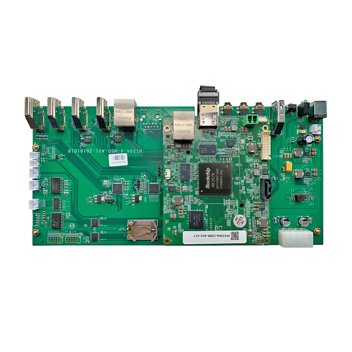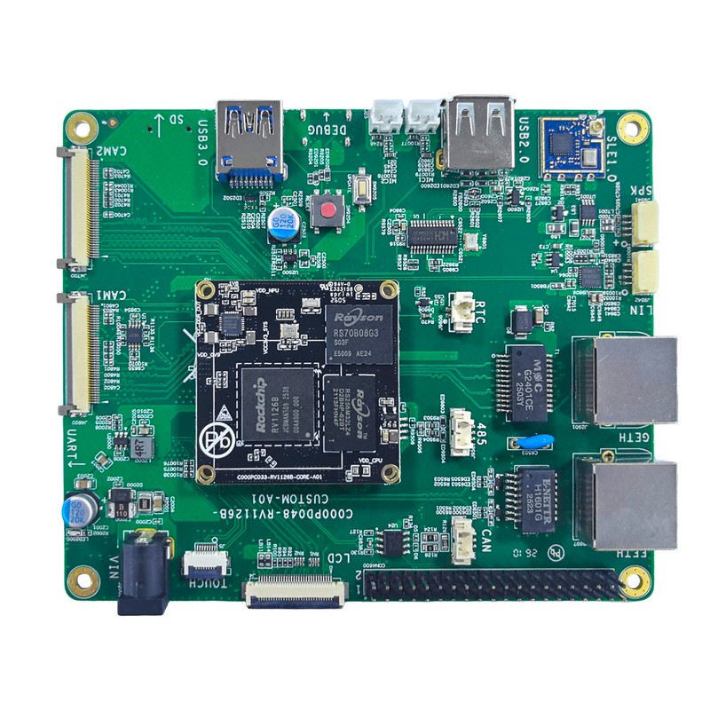 性能與應用介紹 本款基于瑞芯微 RK3576 打造的定制開發板,搭載 8 核異構 CPU(4 核 Cortex-A72 最高 2.2GHz + 4 核 Cortex-A53 最高 1.8GHz),搭配 6.0Tops 高算力 NPU,可高效支撐 AI 視覺分析、邊緣計算等場景。硬件配置 8GB DDR4 內存 + 16GB EMMC 存儲,運行流暢穩定。板載 2 路千兆網口、4 路 HDMI 接口(2 路 MIPI 輸出、2 路 HDMI 輸入)、2 路 USB2.0 HOST、3 路 SATA 接口,同時配備 RS232、多組調試串口及豐富引腳,滿足多屏顯示、數據擴展、二次開發需求。尺寸 154×113mm,支持 0℃~70℃寬溫工作,適配工業安防、智能終端、AIoT 等多場景定制開發。產品外觀 rk3576定制開發板-正面圖 2、硬件資源描述項目類型型號參數 說明核心配置處理器RK3588CPU:4核Cortex-A72(最高2.2GHz) + 4核Cortex-A53(最高1.8GHz)智能視頻分析NPU:6.0Tops 神經網絡運算性能存儲內存DDR4:8GB存儲EMMC:16G連接器核心板連接器:J41FX10A-120S-SV (21)主板接口HDMI 接口4MIPI OUT2, HDMI IN2 FAN 接口1串口RS2321串口MCU_JTAG1串口ARM_JTAG1串口DEBUG1串口USB 接口2USB2.0 HOST 接口MASKROM1RECOVERY1PMIC_PWR_ON1網口 210/100/1000 兆SATA 3 2數據接口、1供電接口工作環境操作溫度:0℃~+70℃;濕度:RH40%~RH90%(不結露)軟件規格參數 UBOOT啟動方式支持從eMMC 啟動燒錄方式調試串口Kernel版本linux 4.19支持的文件系統ext4/nfs/yaffs2/ubifs下載方式串口/網口Device DriverSerial port串口驅動Ethernet10/100 以太網卡驅動USB hostUSB 2.0 host 驅動OUPTHDMI 輸出驅動eMMCeMMC 驅動DDRDDR驅動TCP/IP提供完整的TCP/IP 協議配置系統和服務Ifconfig/route等用于網絡配置及相關服務程序文件系統常用命令cat、chmod、echo、free、top、kill、ls、mkdir、mount、ps、reboot、rm、lsmod、rmmod 等工作環境環境參數 最小值 典型值最大值商業級溫度0℃/ 70℃儲存溫度-10℃25℃85℃工作電壓11.7V12V12.5V功耗典型電壓典型電流典型功耗12VTBDTBD技術支持及資料1、開發資料 提供基于核心板的產品設計手冊,包括硬件設計、系統移植、驅動開發、 應用軟件開發環境。資料包括載板的原理圖、PCB、驅動源碼、內核源碼 等供用戶設計參考,產品開發速度提高 50%以上。 提供主芯片數據手冊、軟件開發環境、軟件開發 SDK 包。 提供 vdec 等豐富的 Linux 例程。 提供 Linux+Qt 開發環境,快速進入 Qt 應用軟件開發。2、技術支持 協助判斷產品是否存在故障 RV1126 開發板產品軟硬件資源解釋 幫助正確地編譯與運行我們提供的源代碼 按照產品文檔資料,解決主板內出現的異常問題3、增值服務 根據用戶需求完成定制硬件及軟件開發 支持 Linux 系統定制 支持 OEM/ODM 定制 支持項目外包開發 查看更多
